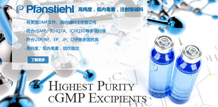 “熱烈祝賀Pfanstiehl的注射級甘氨酸Glycine(G-140)喜獲CDE登記號F20250000403, 這是Pfanstiehl產品獲得的第18個CDE登記號!”甘氨酸在醫藥輔料制劑中應用廣泛,, 可作為緩沖劑,增溶劑,穩定劑等,具有諸多優勢。Pfanstiehl秉承一貫高品質理念,為滿足全球生物制藥行業對于高品質甘氨酸的需求,隆重推出的注射級甘氨酸Glycine (G-140), 具有超高純度,超低內毒素,超低金屬殘留的特點,單獨檢測29種金屬離子,并且新增DNA,RNA,DNA酶,RNA酶和脂肪酶,亞硝酸鹽等多項質量指標的檢測,符合多國藥典規定(USP, EP, BP, JPE, ChP),可用于生物治療性藥物和疫苗的生產。產品信息:· 產品名稱:Glycine, High Purity, Low Endotoxin, Low Metals, USP, EP, BP, JPE, ChP (G-140)· 中文名稱:甘氨酸· 分子式:C2H5NO2· 分子量:75.07 g / mol· CAS號:56-40-6· 產品貨號:G-140產品特點: · 超高純度,超低內毒素,超低微生物含量,超低金屬雜質殘留· 質量指標新增DNA,RNA,DNA酶,RNA酶,脂肪酶和亞硝酸鹽檢測· 符合多國藥典:USP, EP, BP, JPE, ChP· 符合ICH Q3D標準· 符合GMP標準· 已獲DMF和CDE登記號 產品應用:· 緩沖劑· 穩定劑· 增溶劑如果您對Pfanstiehl注射級別Glycine G-140感興趣,歡迎聯系Pfanstiehl 中國區代理商北京西美杰科技有限公司獲得如下詳細的產品概況說明文件和測試樣品。Pfanstiehl Inc.最新產品系列如下,歡迎聯系北京西美杰科技有限公司獲取100g裝免費樣品。北京西美杰科技有限公司為Pfanstiehl中國代理,為客戶提供完善的技術支持與售后服務。歡迎撥打西美杰客服電話400-050-4006或者登陸網站www_xmjsci_com.hbhhyz.cn了解更多信息。 更多>